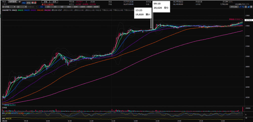 13:26 IHI(7013)を¥17,530で100株売り(+¥1,000)
