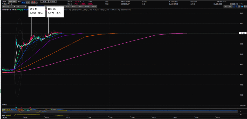 10:05 キオクシア(285A)を¥5,370で100株売り(+¥2,000)