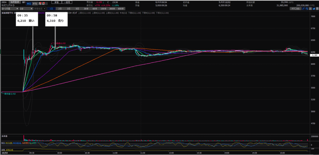 09:35 キオクシア(285A)を¥6,210で100株買い