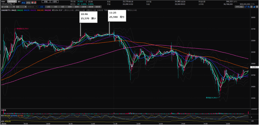 トレードではソフトバンクに入ったが、うまく利益を伸ばすことができなかった