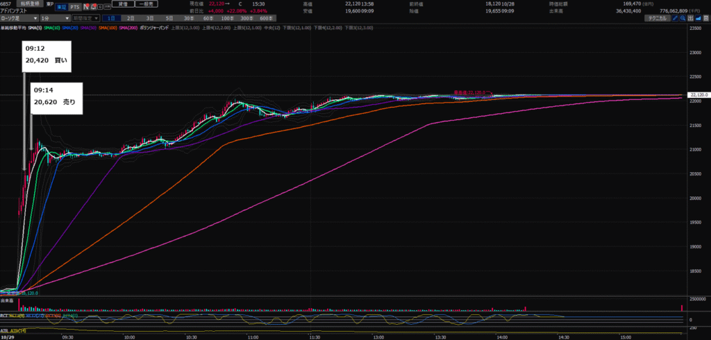 09:14 アドバンテスト(9984)を¥20,620で100株売り(¥+20,000)