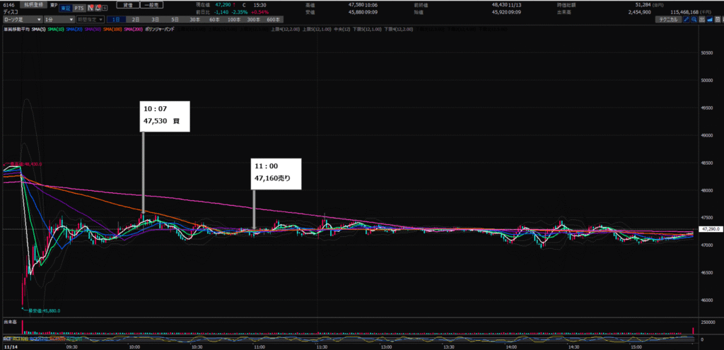 11:00 ディスコ(6146)を¥47,160で100株売り(-37,000)