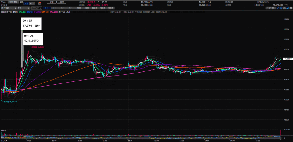 09:26 ディスコ(6146)を¥47,910で100株売り(+14,000)