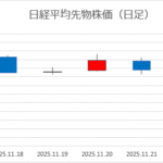日経平均先物は寄付き直後に高値(¥49,730)をつけた後、大きく下落し、¥48,810まで約¥920の下げとなった