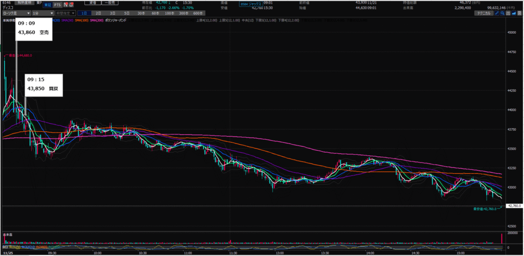 09:09 ディスコ(6146)を¥43,860で100株空売り