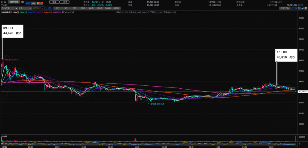 15:09 ディスコ(6146)を¥43,810で100株売り(-66,000)