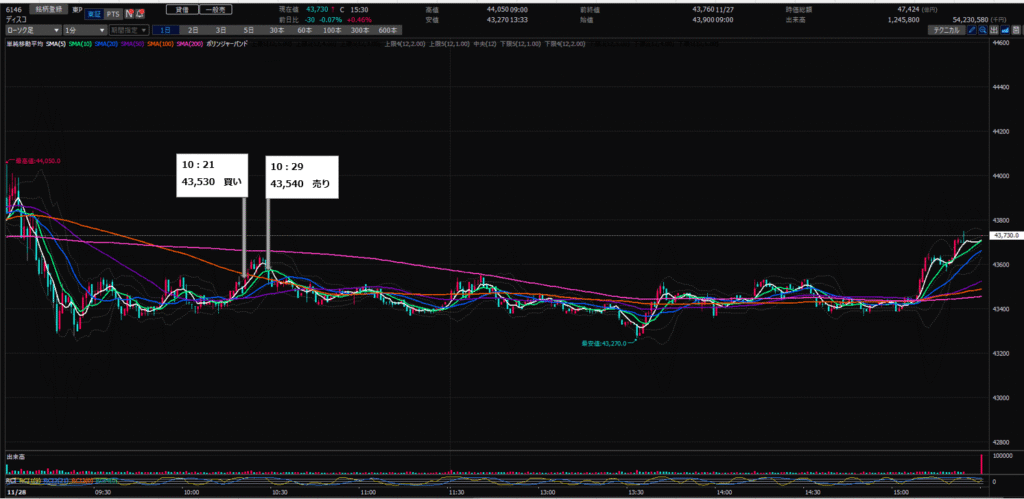 10:29 ディスコ(6146)を¥43,540で100株売り(+1,000)