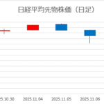 日経平均先物は寄り天となり、下げては¥51,000前後まで戻す展開を何度も繰り返す不安定な値動きとなった