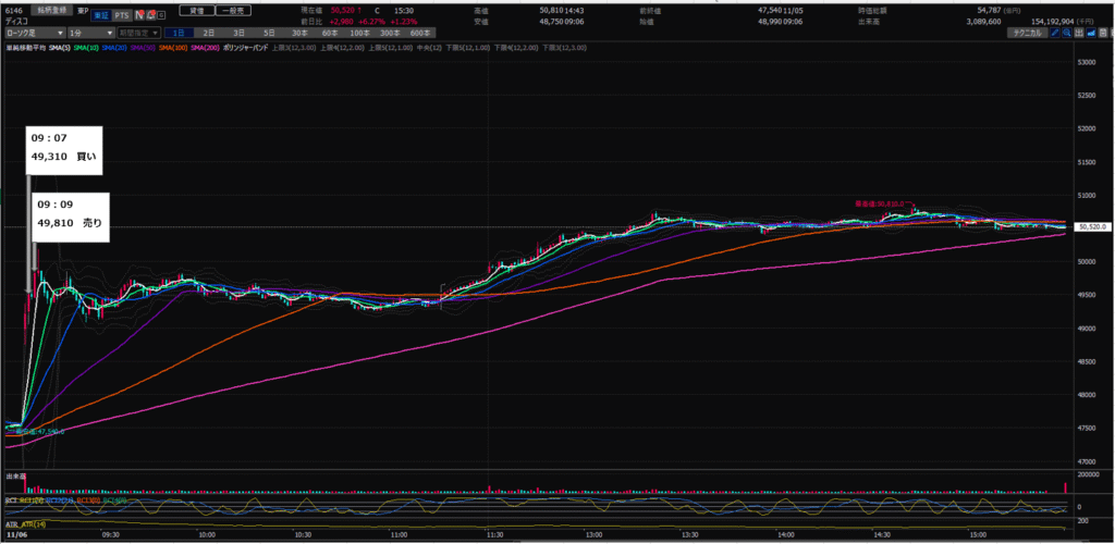 09:09 ディスコ(6146)を¥49,810で100株売り(+¥50,000)