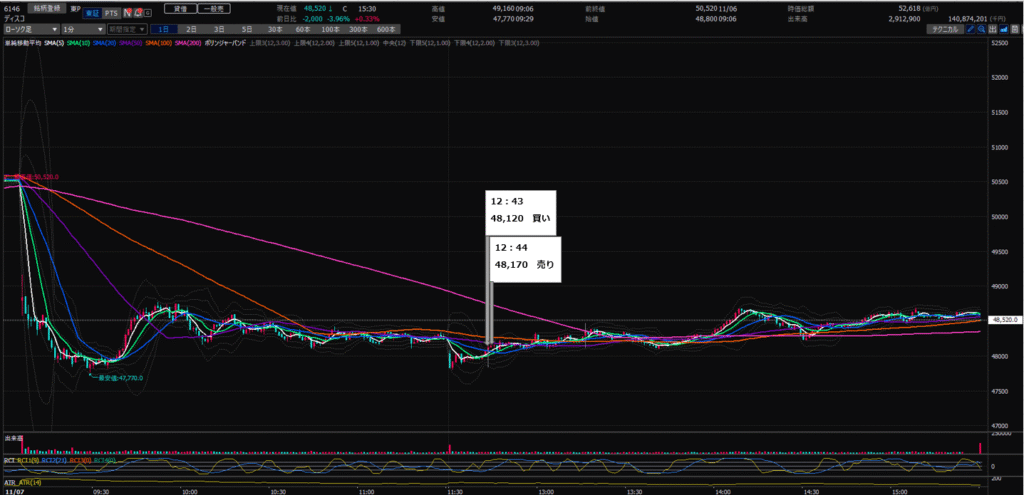 12:44 ディスコ(6146)を¥48,170で100株売り(+¥5,000)