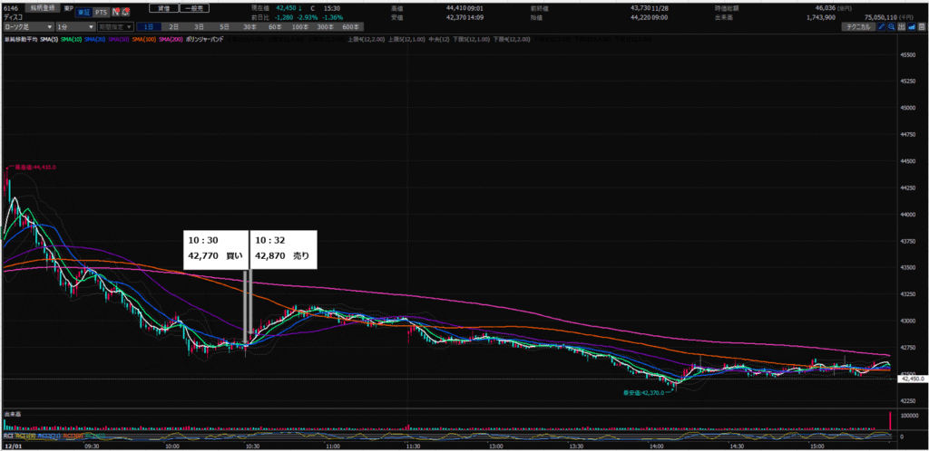 10:30 ディスコ(6146)を¥42,870で100株売り(+10,000)