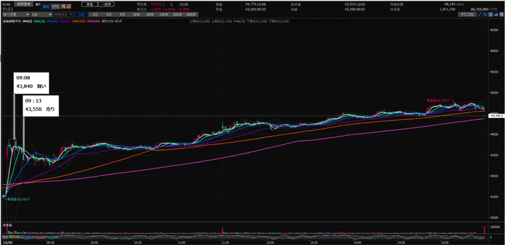 09:13 ディスコ(6146)を¥43,550で100株売り(-29,000)