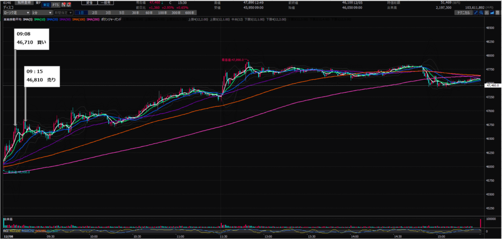 09:15 ディスコ(6146)を¥46,810で100株売り(+10,000)