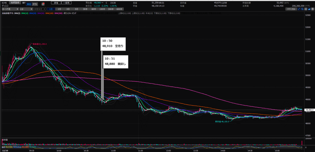 10:50 ディスコ(6146)を¥48,910で100株空売り