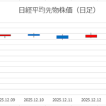 日経平均先物は、全体的に弱い動きが続いており、レンジの位置を少しずつ切り下げています。