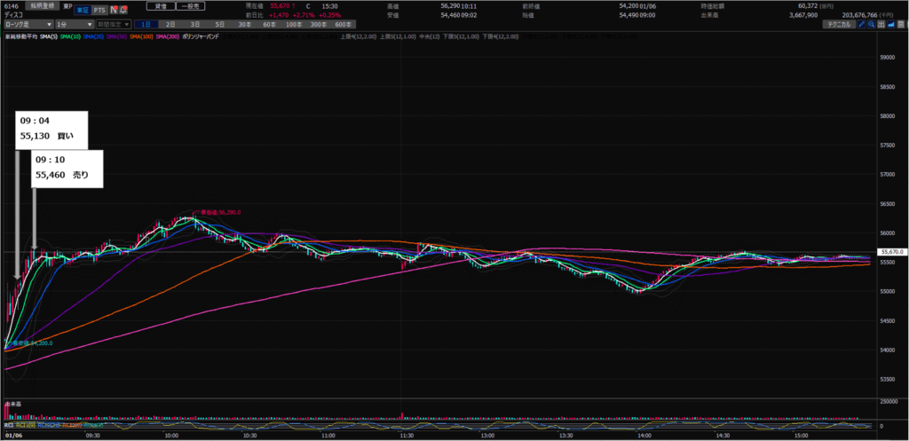 09:10 ディスコ(6146)を¥55,460で100株売り(+¥33,000)