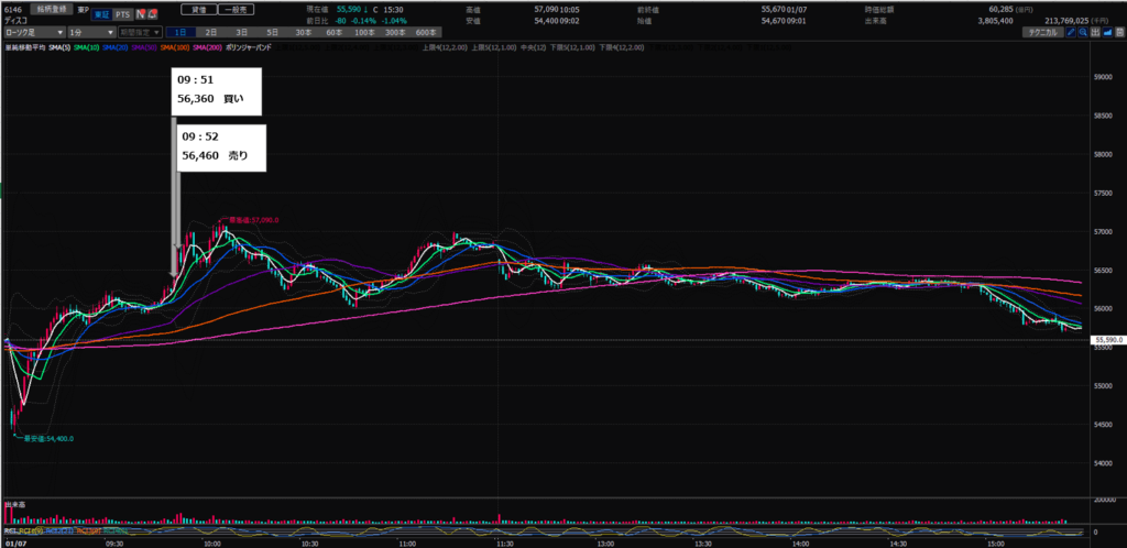 09:52 ディスコ(6146)を¥56,460で100株売り(+¥10,000)