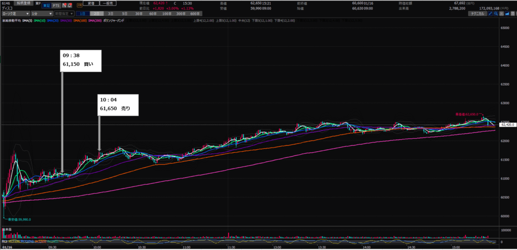 10:04 ディスコ(6146)を¥61,650で100株売り(+¥50,000)