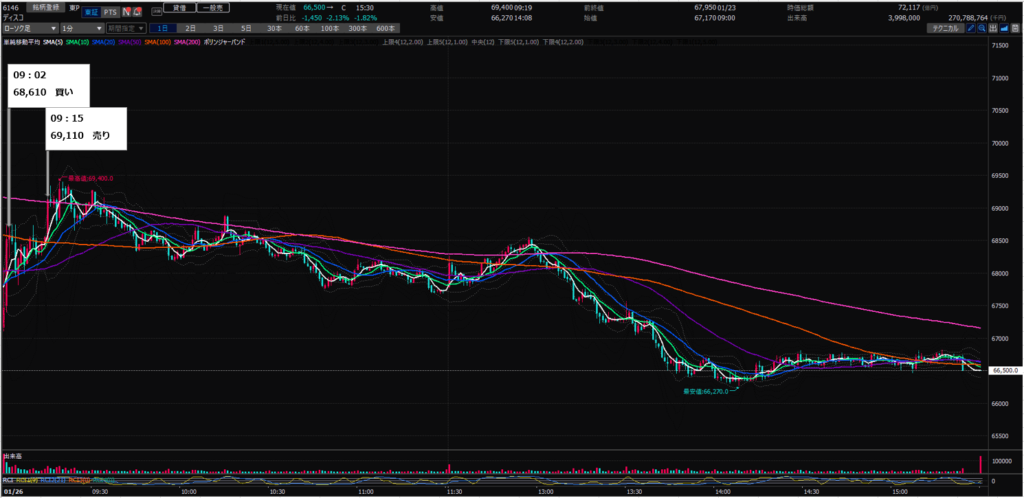 09:15 ディスコ(6146)を¥69,110で100株売り(+¥50,000)