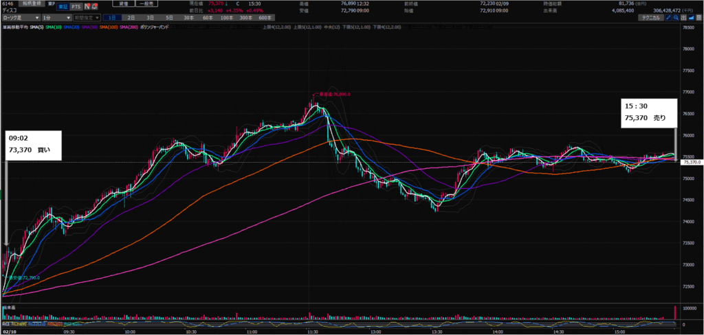 15:30 ディスコ(6146)を¥75,370で100株売り(+¥200,000)