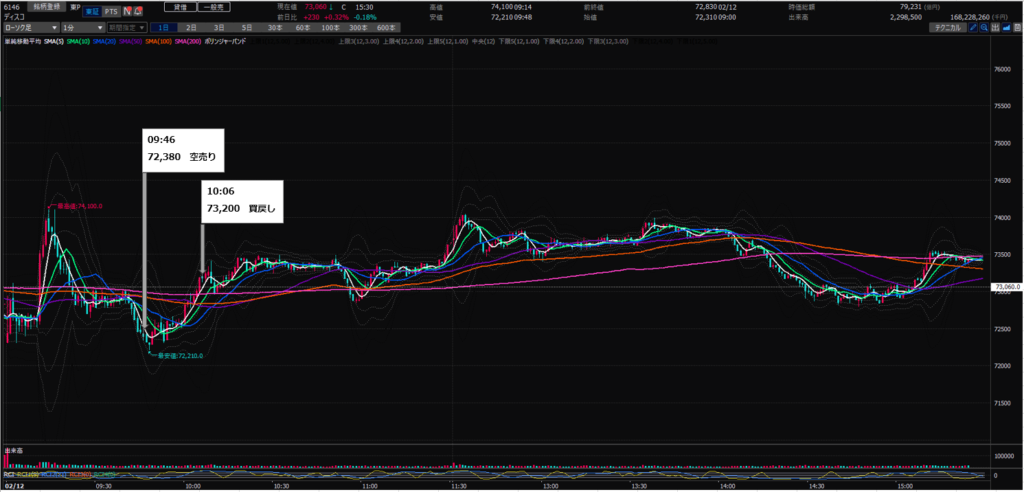 09:46 ディスコ(6146)を¥72,380で100株空売り