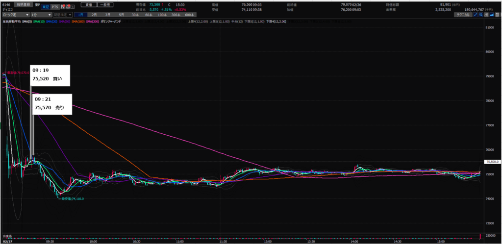 09:21 ディスコ(6146)を¥75,570で100株売り(+¥5,000)