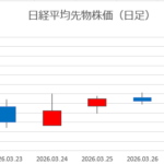本日の日経平均先物は、寄り付き後に上昇したあと一度下落しましたが、安値を割ることなく反発。その後は再び上昇し、最終的に高値を更新しました。