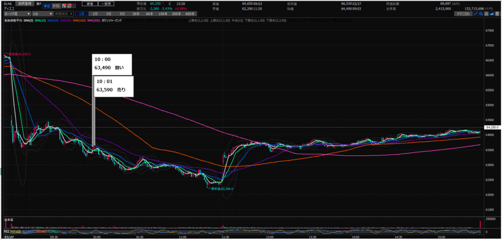 10:01 ディスコ(6146)を¥63,590で100株売り(+¥10,000)