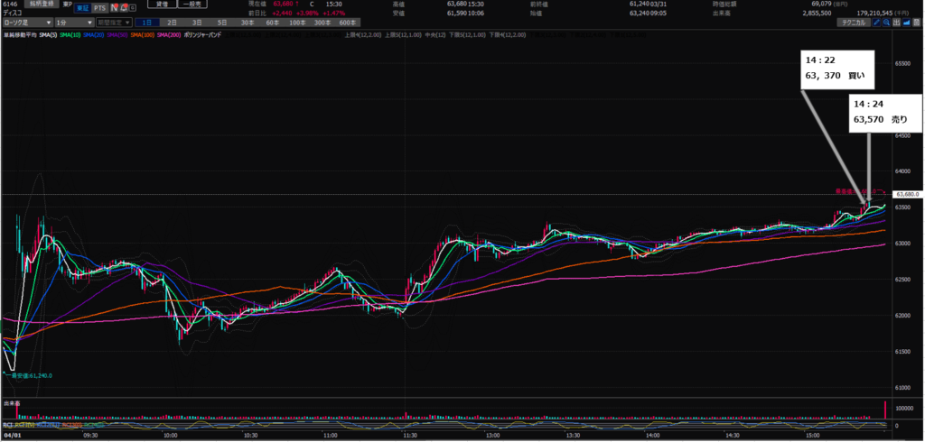 15:24 ディスコ(6146)を¥63,570で100株売り(+¥20,000)