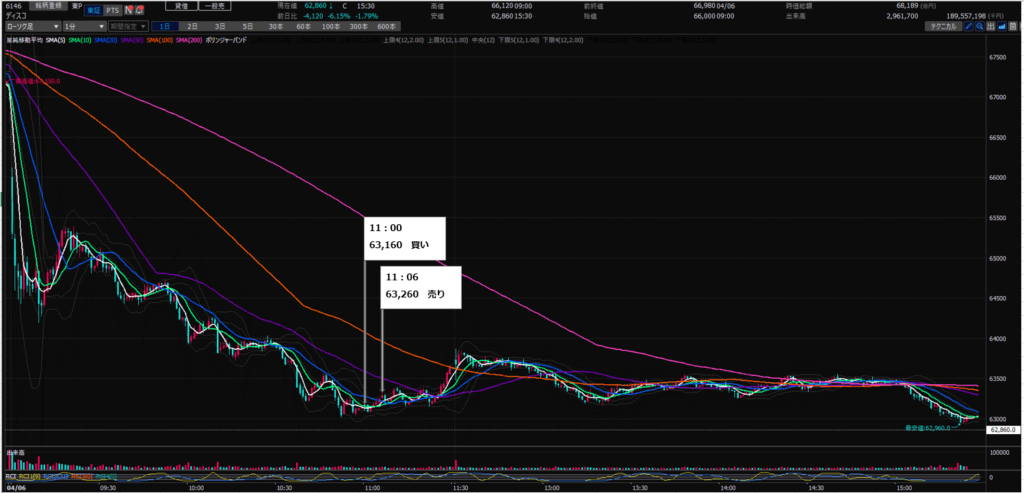 11:06 ディスコ(6146)を¥63,260で100株売り(+¥10,000)