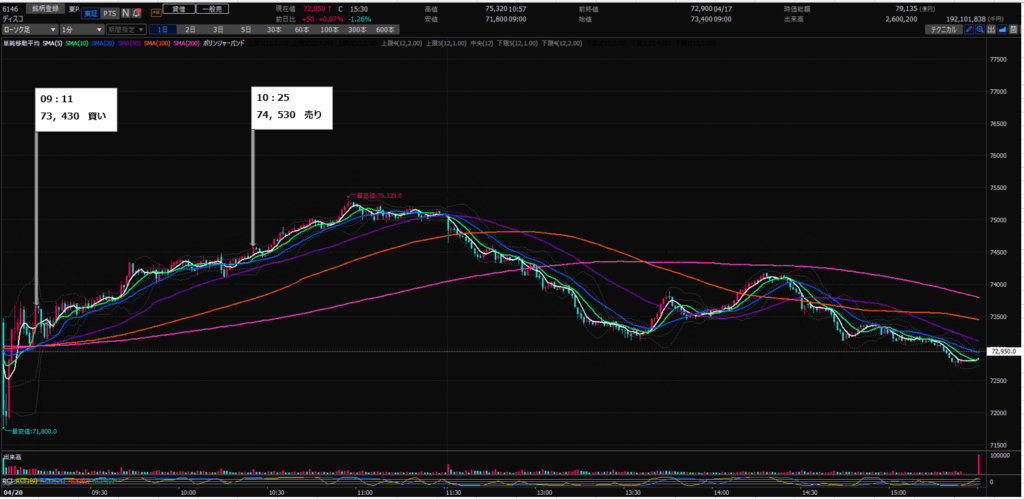 10:25 ディスコ(6146)を¥74,530で100株売り(+¥110,000)