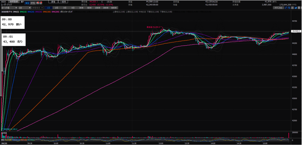 09:01 レーザーテック(6920)を¥43,400で100株売り(+¥43,000)