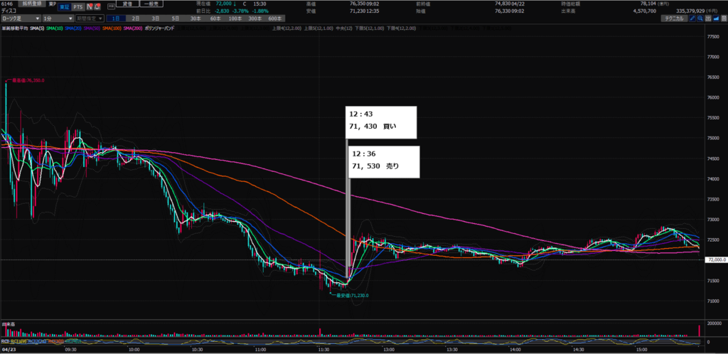 12:44 ディスコ(6146)を¥71,530で100株売り(+¥10,000)