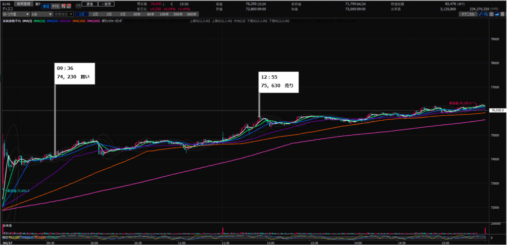 12:55 ディスコ(6146)を¥75,630で100株売り(+¥140,000)