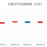 本日の日経平均先物は、寄り付き後に¥60,270まで上昇したものの、その後は¥59,670まで下落しました。