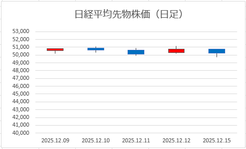 その後は 50,300円台〜50,500円台を往復するだけの展開でした。